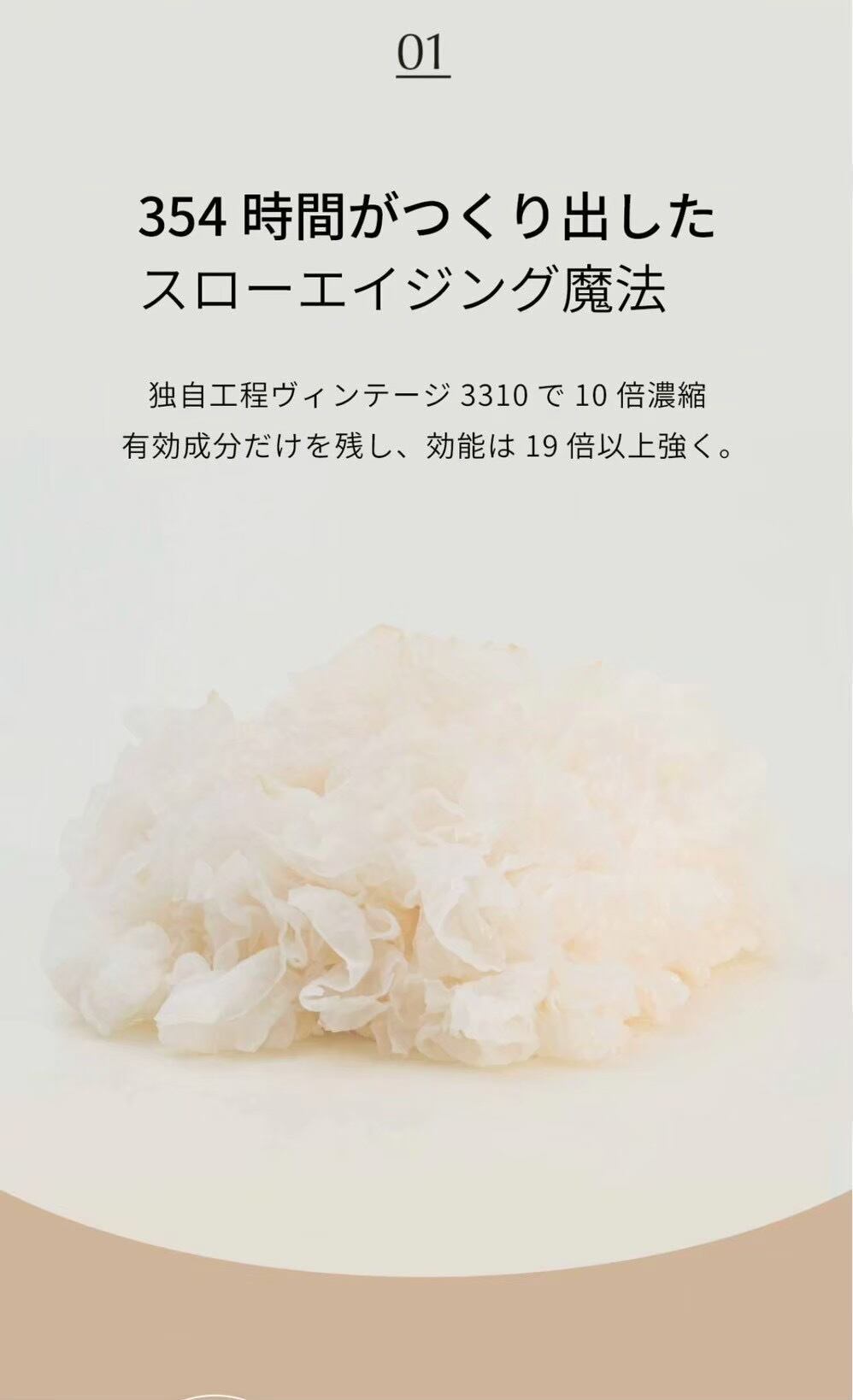 無農薬・ビーガン認証を受けたキクラゲの有効成分を354時間かけて10倍に凝縮させたエキスを、贅沢に使用。